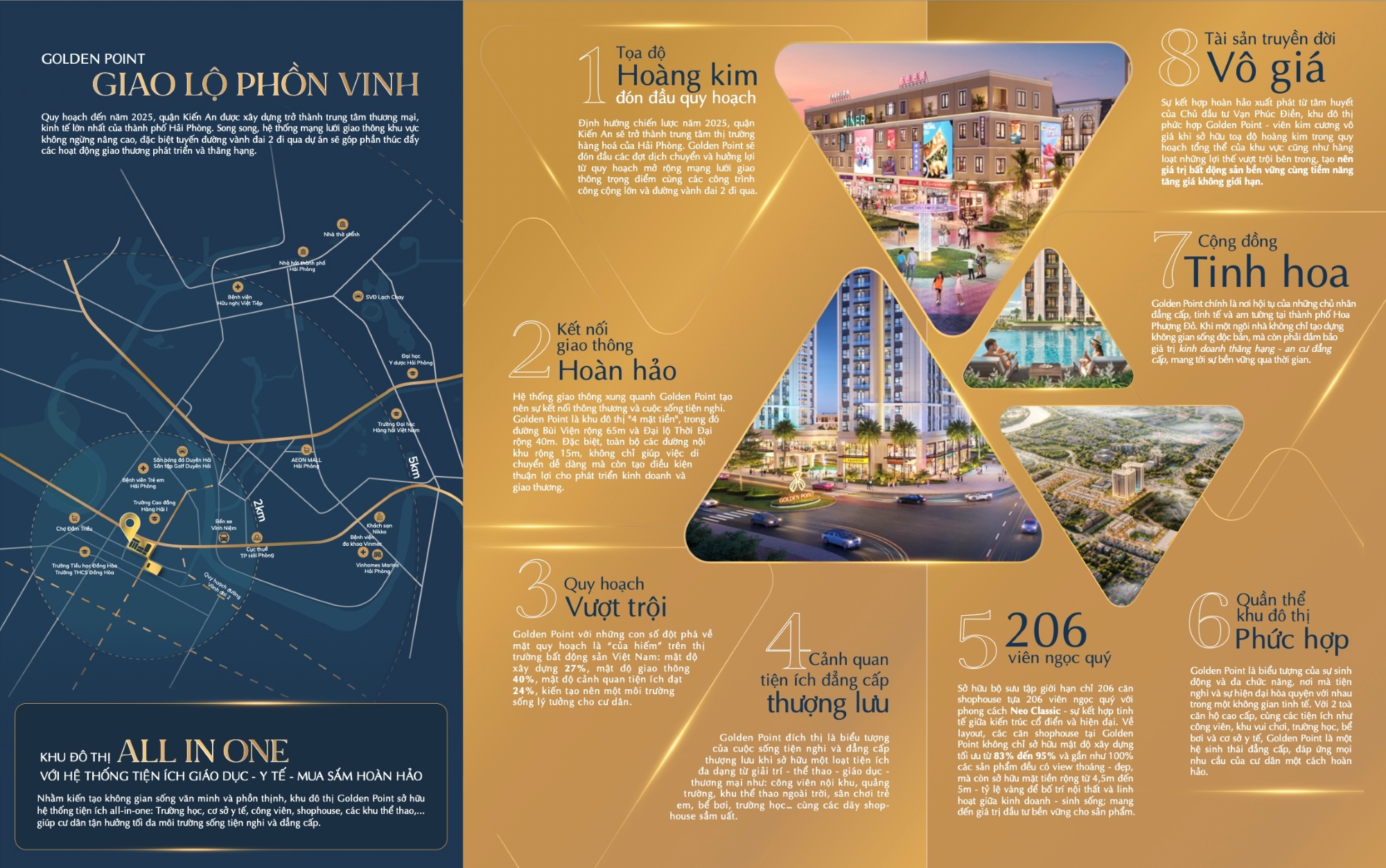 Với vị trí kể trên có thể nhận định, Golden Point Hải Phòng sở hữu tọa độ vàng. Điển hình như nhất cận thị, nhị cận giang và tam cận lộ. Điều này không chỉ đảm bảo sự thuận tiện trong quá trình di chuyển mà còn tốt trong phong thủy.